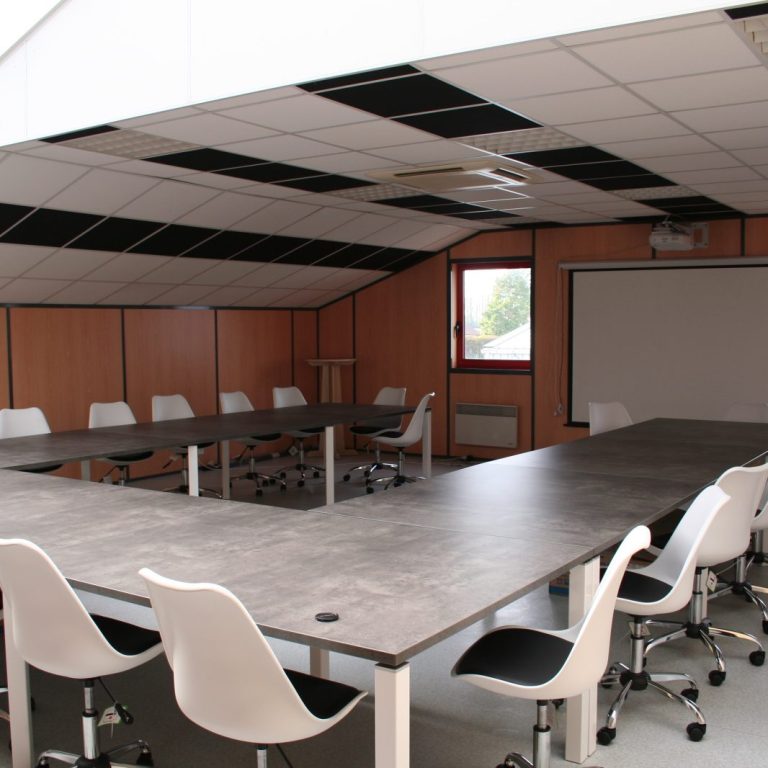 Une salle de réunion, munie d'un vidéoprojecteur se trouve à l'étage du bâtiment, prête à vous recevoir comme il se doit.